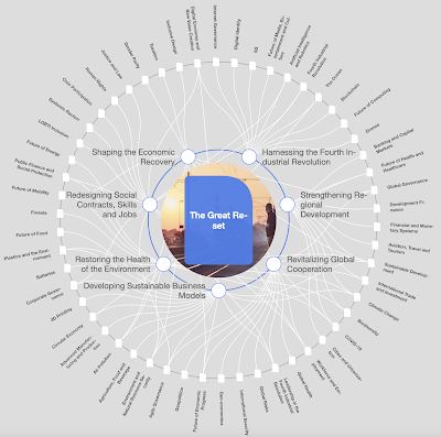 The Strategic Intelligence section of the WEF site15 shows the grand plan of “The Great Reset” (see above; it even looks like a coronavirus!) in an inverted seven-pointed star consisting of seven main topics: 1. Harnessing the Fourth Industrial Revolution, 2. Shaping the Economic Recovery, 3. Redesigning Social Contracts, Skills and Jobs, 4. Restoring the Health of the Environment, 5. Developing Sustainable Business Models, 6. Revitalising Global Cooperation, 7. Strengthening Regional Development. Some might opine: “what’s wrong with them? They all seem positive and beneficial” But let’s look further. The key theme is the first one: “Harnessing the Fourth Industrial Revolution”. This is the meta-level which determines the others in a sense, because it is the one that circumscribes the whole by its definition of the age in which – it claims – we now live. The world must be organised, it believes, so as to be in harmony with this “age of the Fourth Industrial Revolution”.